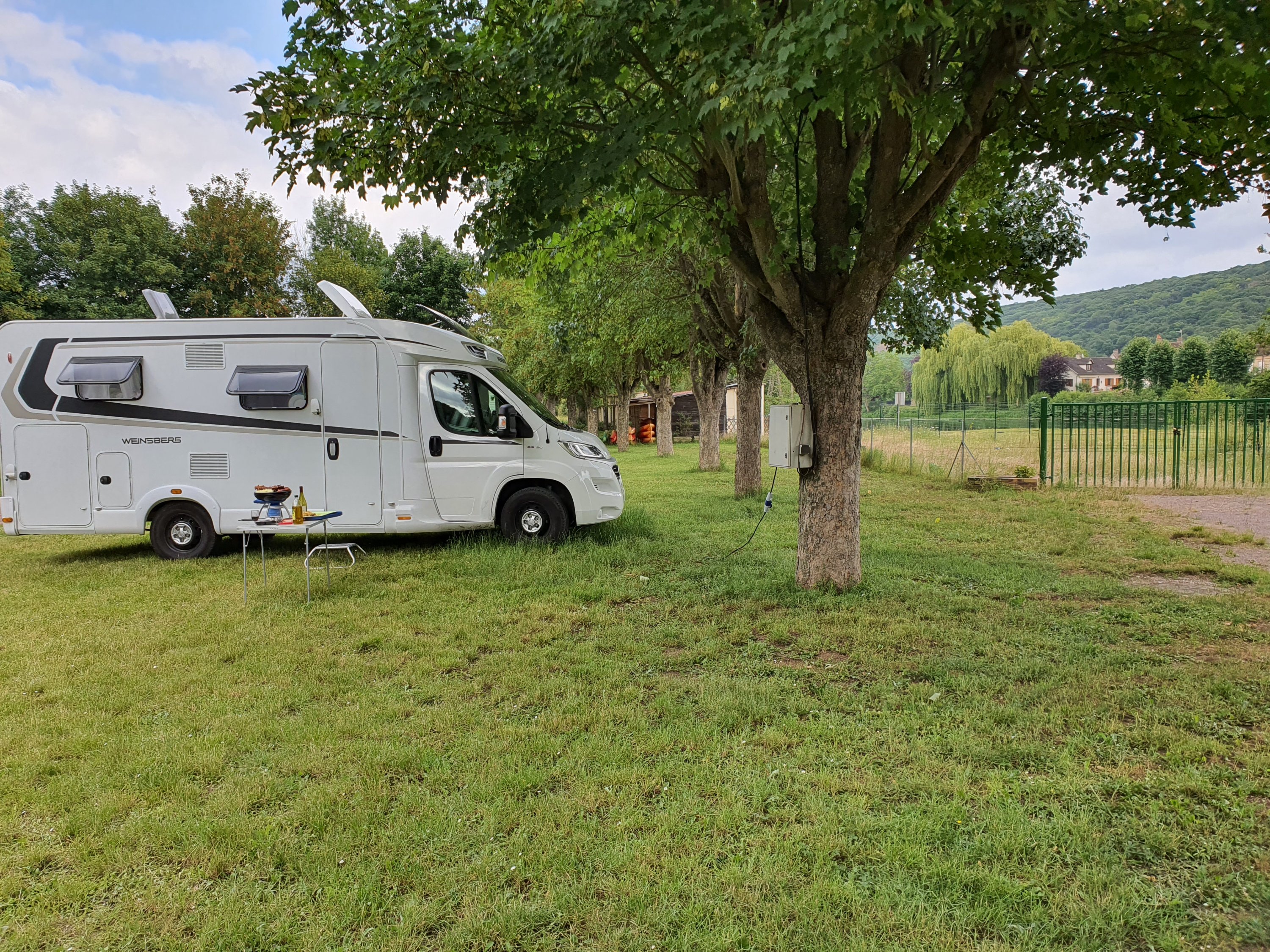We were stuck in a maple grove next to a river in Burgundy having to endure 68F weather while I made BBQ on my new grill. It would have been perfect if Burgundy had beer. I suffered through a 7€ pinot that actually was kind of magnificent. I only brought one long sleeved shirt and a medium rain jacket with me on this trip. I just don’t think of the second week of June as being sweater weather. Last year in Texas the air conditioning went on in April and came off in November. I don’t even have air conditioning in the camper or either apartment.